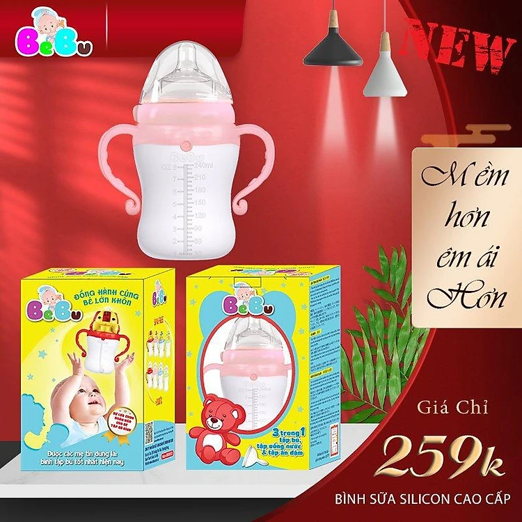 Bình Sữa BEBU 240ML Silicon Kháng Khuẩn – Hàng Chính Hãng