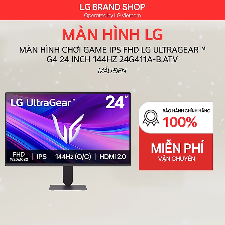 [Chỉ giao Miền Bắc/Nam 24G411A-B.ATV - Màn hình chơi game IPS FHD LG UltraGear G4 24 inch 144Hz (ép xung) - Hàng chính hãng