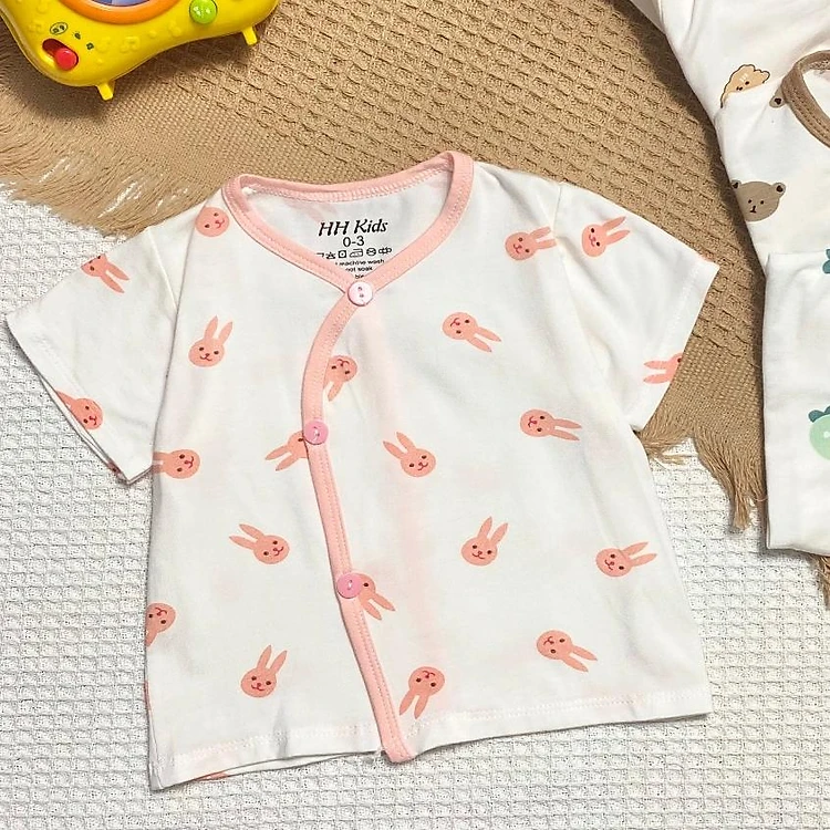 [3-9kg] Áo Sơ Sinh Ngắn Tay Họa Tiết Viền Màu Chất Petit Mềm Mát, Co Giãn 4 Chiều