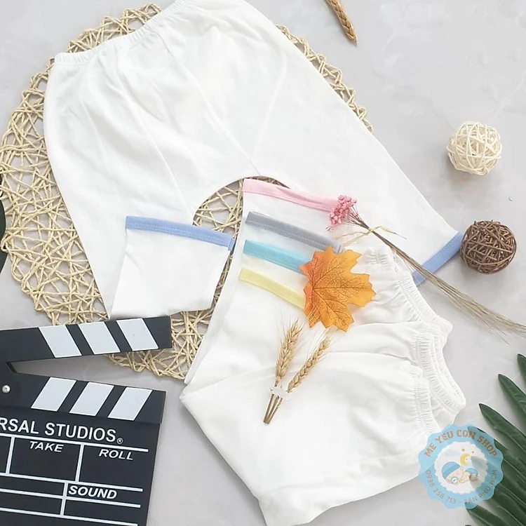 (3-9kg) QUẦN DÀI RÃ ĐÁY COTTON TRẮNG VIỀN CHO BÉ -CÚN CON