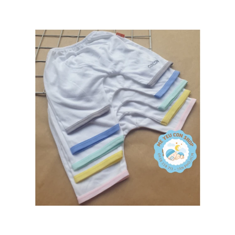 (3-9kg) QUẦN NGẮN SƠ SINH COTTON TRẮNG VIỀN - CÚN CON