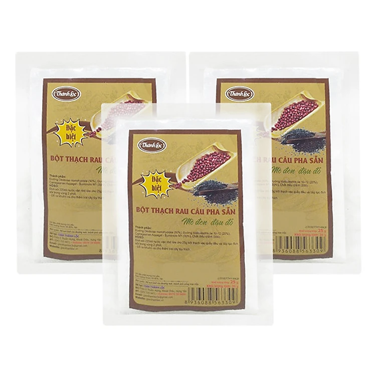 - 3 Gói Bột Thạch Rau Câu Pha Sẵn (Mè Đen, Đậu Đỏ) Thành Lộc là bột thạch được sử dụng để chế biến những món ăn tráng miệng cho gia đình.