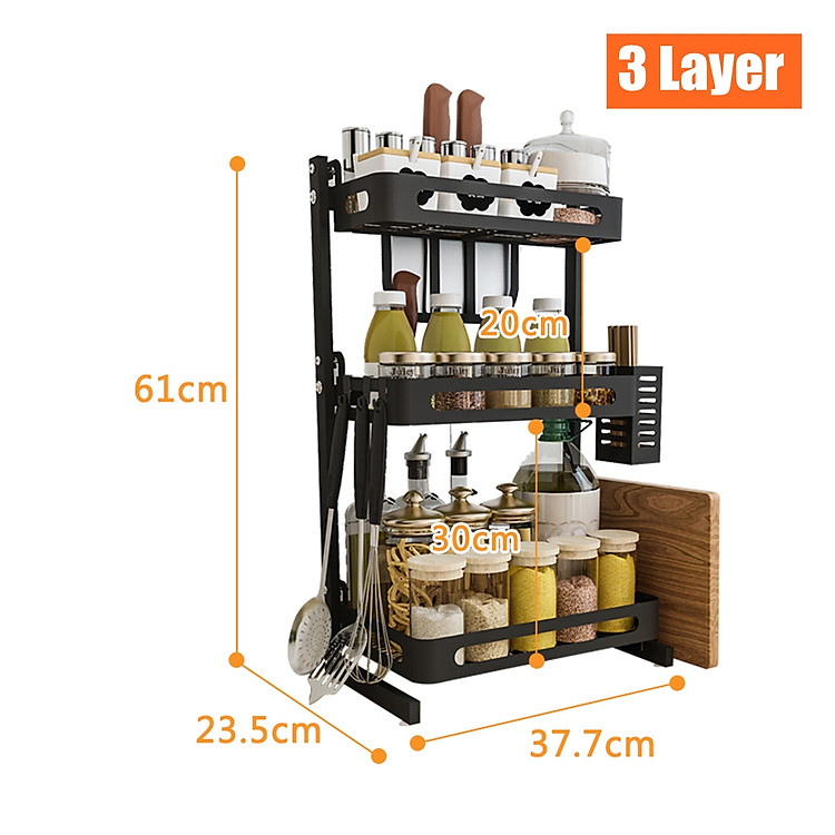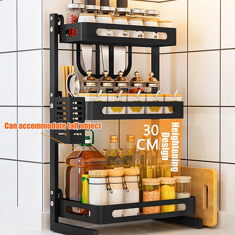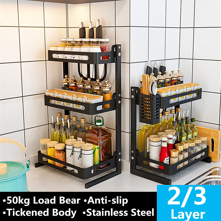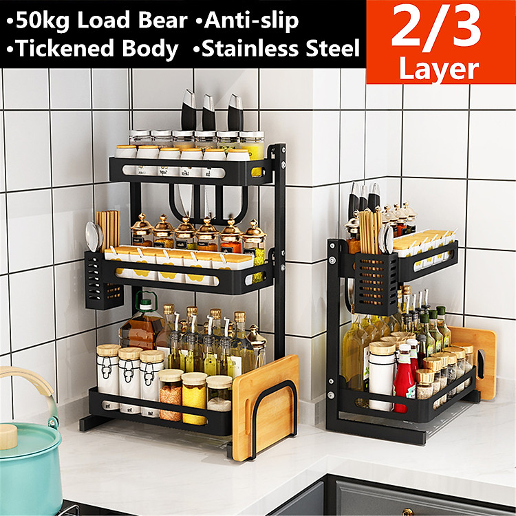 3 Layers Kitchen Shelf for Storage Organizer Holder Spice Rack Punch Free Stainless Steel Storage Shelves Rack for Kitchen