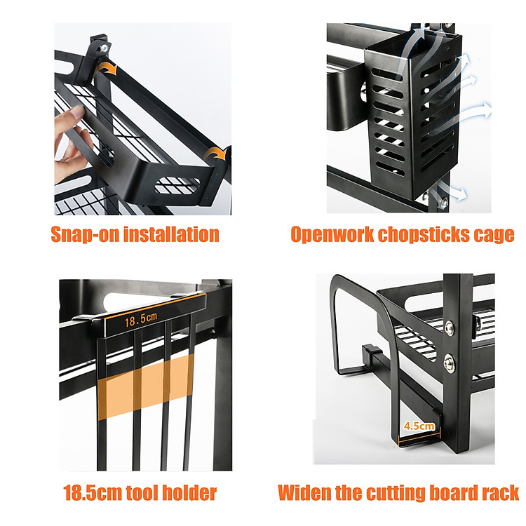 (A Whole Set includes rack + chopsticks cage + 3pcs hooks + tool holder + chopping board + 4pcs Suction pad)
