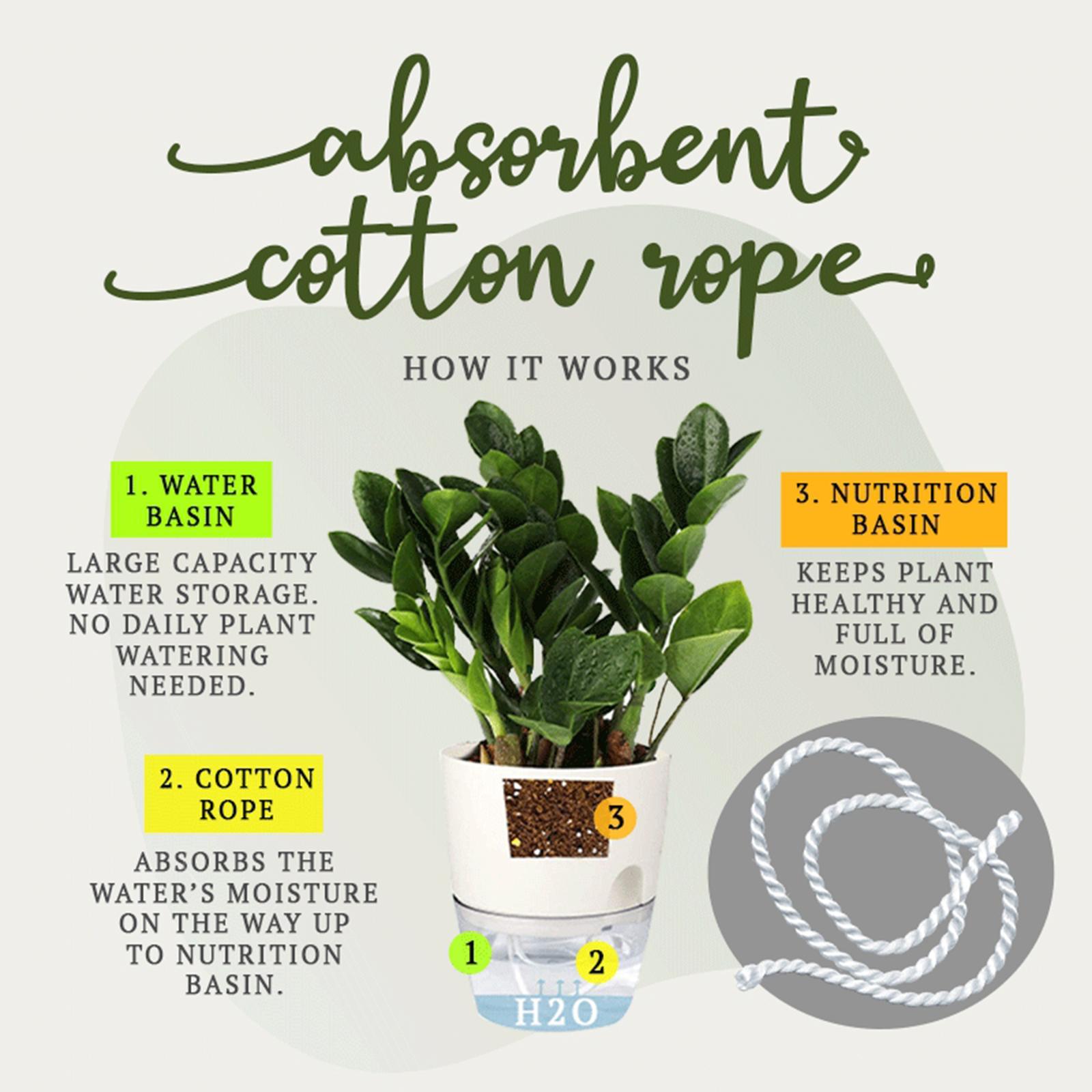 Cotton rope absorbs water from the water basin. It builds moisture that goes way up to nutrition basin, in which it keeps plant healthy and full of moisture. Avoid frequent watering and let this flower pot help with your gardening.