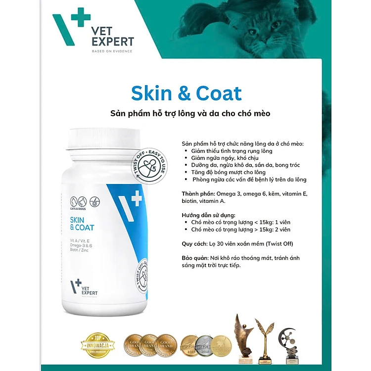 [ 30 viên ] Vet Expert bổ sung vitamin & khoáng , tăng cường miễn dịch, chăm sóc da và lông , xương khớp cho chó và mèo