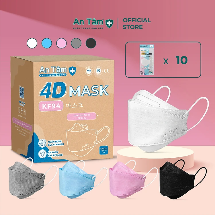 [300 Cái Khẩu Trang KF94] Thùng Khẩu Trang Y Tế Kháng Khuẩn KF94 An Tâm- 4 Lớp