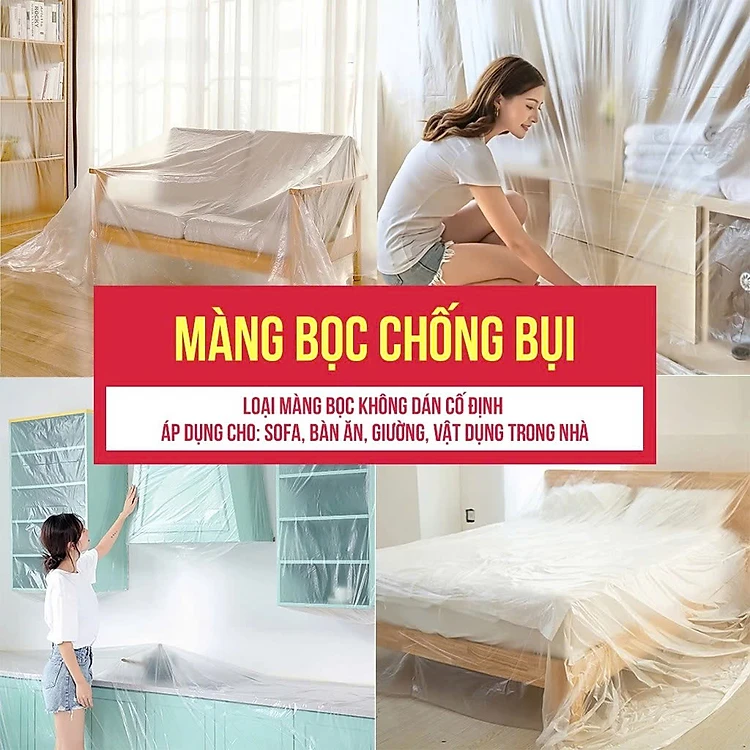 300cm*12m Màng PE Bọc Nội Thất Chống Bụi Chống Nước Khi Thi Công MÀU TRẮNG TRONG