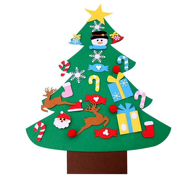 3ft DIY Felt Christmas Tree Set,DIY Christmas Tree for Children Double Stitched Door Wall Hanging Xmas Decorations with Gift Bag Detachable Ornaments for Kids