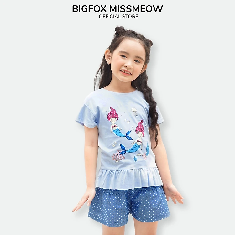 [3TUỔI-11TUỔI] Áo Mùa Hè Cho Bé Gái MissMeow,Size Đại, Áo Cotton Thun Cộc Tay Bèo Gấu In Nàng Tiên Cá 3-11