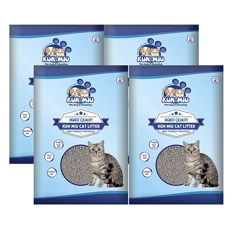 • 4 Gói Cát Vệ Sinh Kún Miu Hương Cà Phê Khử Mùi New X2 (8L / Gói) được cấu tạo từ 100% nguyên liệu đất sét sodium bentonite sản xuất theo quy trình công nghệ hiện đại, các hạt cát vệ sinh có hình dạng tròn, nhờ đó cát kết dính cực nhanh với chất thải của mèo, thẩm thấu tốt.