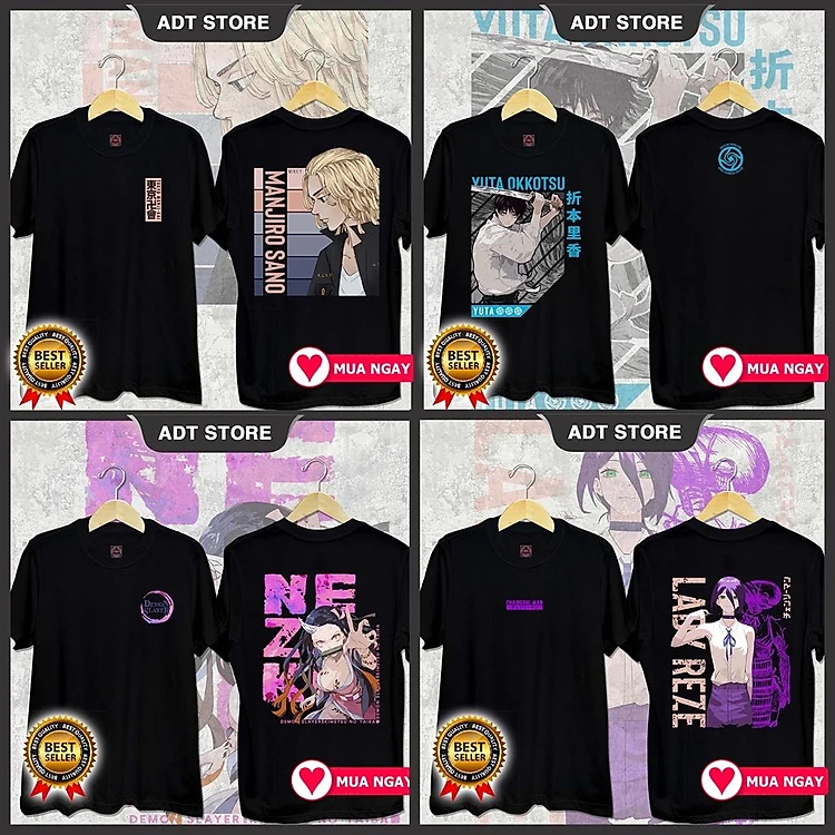 4 mẫu áo thun Kimetsu no Yaiba Nezuko -Chainsaw Man Reze - Jujutsu Kaisen Yuta Okkotsu - Tokyo Revengers Mikey đẹp