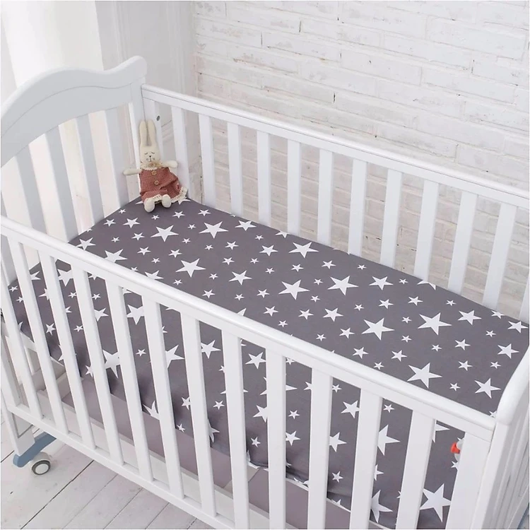 4 tấm quây cũi và ga chun cotton mẫu sao nâu