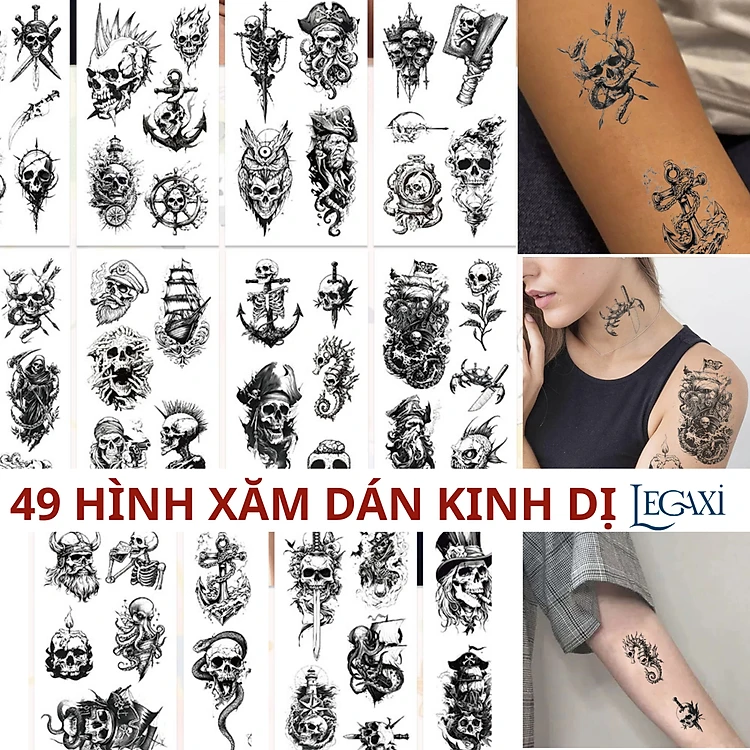 49 Hình Xăm Dán Đầu Lâu Tatto Party Halloween Hình Bánh Lái Mỏ Neo Hoa Hồng Cá Ngựa Thuyền Cướp Biển