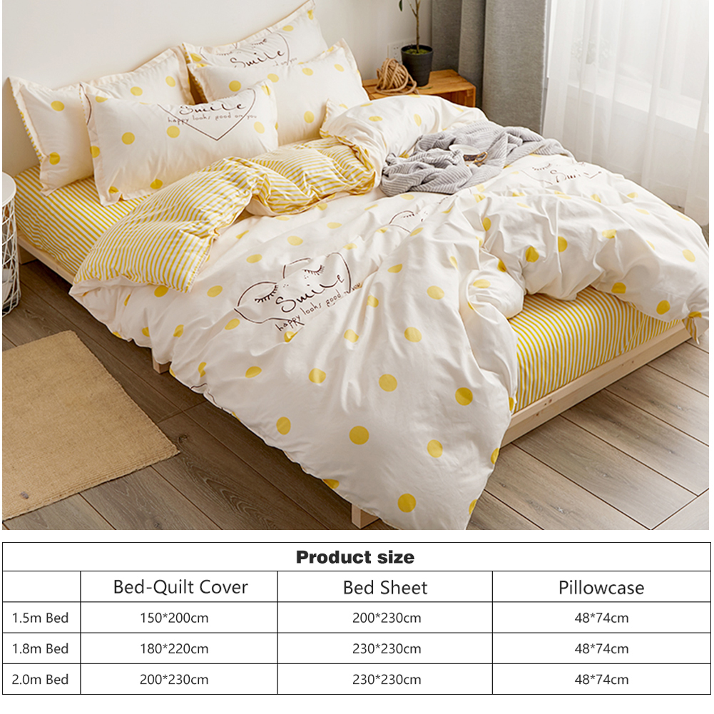 1.5m Bed-Quilt Cover: 150*200cm/59.06*78.75" Bed Sheet: 200*230cm/78.75*90.56" Pillowcase: 48*74cm/18.9*29.14"