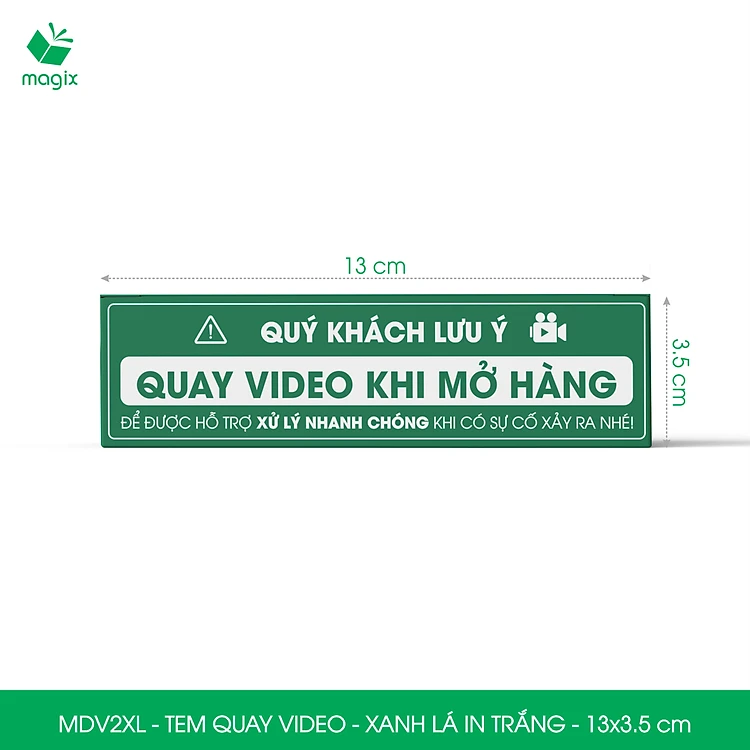 50 Tem chú ý quay video trước khi mở hàng, decal dán hộp - 13x3,5 cm - Xanh lá in trắng - MDV2XL