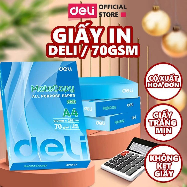500 Tờ Giấy A4 Deli Giấy In Photo Cao Cấp Chính Hãng Loại Dày - Giấy Vẽ Chống Lóa Mỏi Mắt