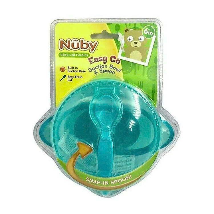 [ 5487-Nuby ] Bộ bát kèm thìa ăn dặm Easy Go, có đế hút chân không