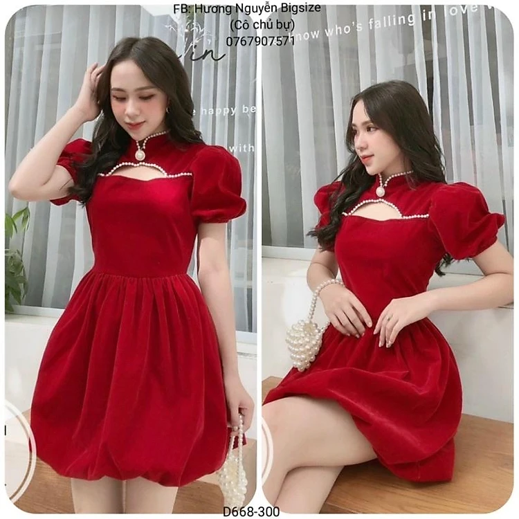 Em này mà mặc dịp Noel hay Tết là bao nổi bật. Vừa xinh, vừa sang trọng, vừa may mắn nữa ạ