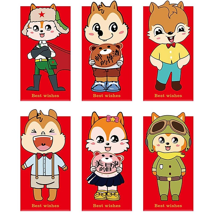 6Pcs/Set Red Cartoon Pattern Lucky Money Envelope for New Year