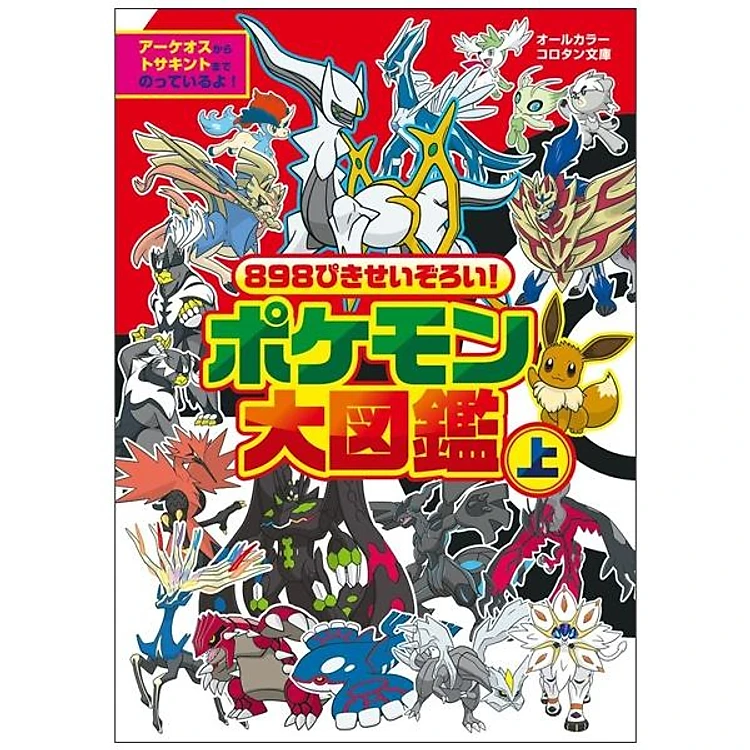 こちらは「上」で、アーケオスからトサキントまでの452匹を収録。例えば、アルセウス、イーブイ、ウーラオス、エースバーンは、この本にのっています。