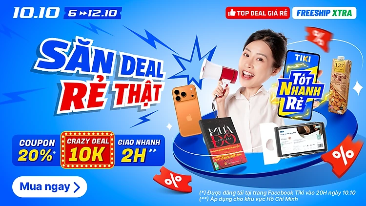Bạn muốn săn giá sốc, Tiki có giá sốc mỗi ngày cho bạn! Bạn là tín đồ của các thương hiệu, các cửa hàng Official chính hãng đang chờ đón bạn. Không cần săn mã freeship, vì Tiki đã có hàng triệu sản phẩm trong chương trình Freeship+, không giới hạn lượt đặt, tiết kiệm thời gian vàng bạc của bạn. Mua thêm gói TikiNOW tiết kiệm để nhận 100% free ship 2h & trong ngày, hoặc mua gói TikiNOW cao cấp để nhận được 100% freeship, áp dụng cho 100% sản phẩm, 100% tỉnh thành Việt Nam. Bạn muốn tiết kiệm hơn nữa? Đã có TikiCARD, thẻ tín dụng Tiki hoàn tiền 15% trên mọi giao dịch (tối đa hoàn 600k/tháng)