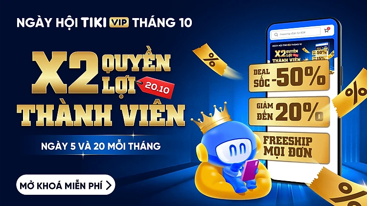 Bạn muốn săn giá sốc, Tiki có giá sốc mỗi ngày cho bạn! Bạn là tín đồ của các thương hiệu, các cửa hàng Official chính hãng đang chờ đón bạn. Không cần săn mã freeship, vì Tiki đã có hàng triệu sản phẩm trong chương trình Freeship+, không giới hạn lượt đặt, tiết kiệm thời gian vàng bạc của bạn. Mua thêm gói TikiNOW tiết kiệm để nhận 100% free ship 2h & trong ngày, hoặc mua gói TikiNOW cao cấp để nhận được 100% freeship, áp dụng cho 100% sản phẩm, 100% tỉnh thành Việt Nam. Bạn muốn tiết kiệm hơn nữa? Đã có TikiCARD, thẻ tín dụng Tiki hoàn tiền 15% trên mọi giao dịch (tối đa hoàn 600k/tháng)