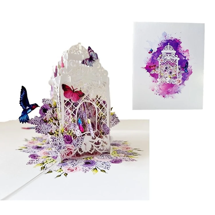 A06 - Thiệp 3D Lồng Hoa & Bướm Tím – Pop Up Card Viethands Giftshop