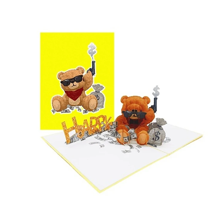A48 - Thiệp 3D Gấu Gangster – Happy Money Bear – Pop Up Card Viethands Giftshop