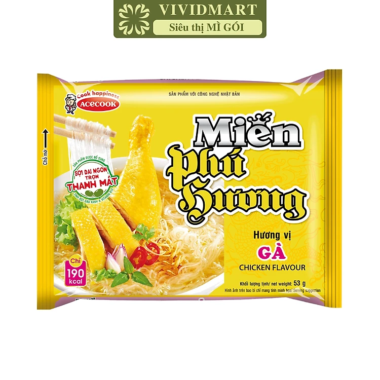 ACECOOK - Miến Phú Hương hương vị Gà, Miến Phú Hương Gà, Miến ăn liền Acecook (55g/gói)