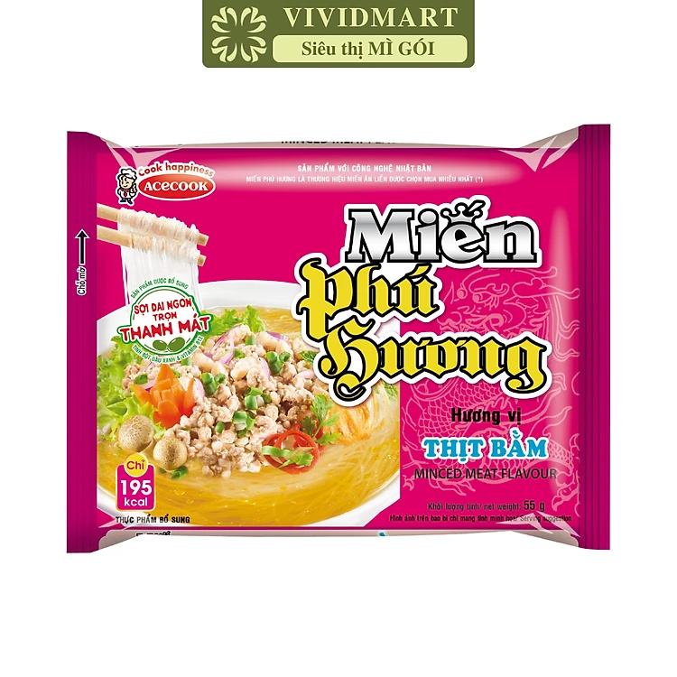 ACECOOK - Miến Phú Hương hương vị Thịt Bằm, Miến Phú Hương Thịt Bằm, Miến ăn liền Acecook (55g/gói)