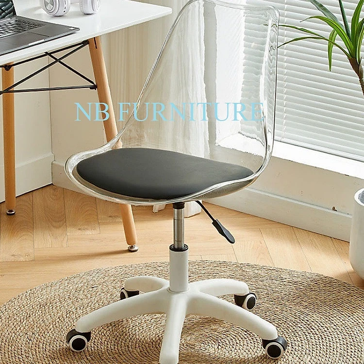 Acrylic transparent cosmetic chair study backrest bedroom swivel chair dresser office chair. Ghế mỹ phẩm trong suốt acrylic nghiên cứu tựa lưng phòng ngủ ghế xoay tủ quần áo ghế văn phòng.
