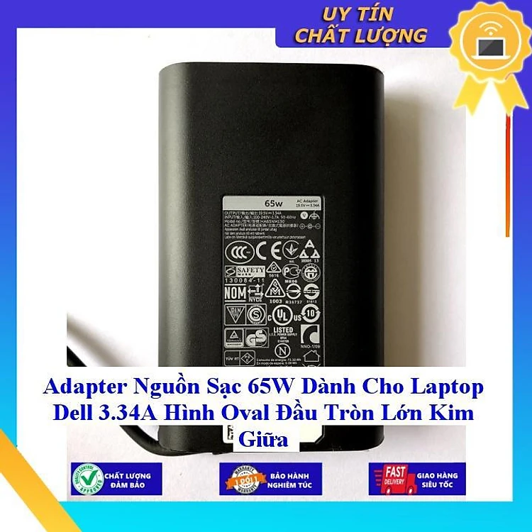 Adapter Nguồn Sạc 65W dùng cho Laptop Dell 3.34A Hình Oval Đầu Tròn Lớn Kim Giữa - Hàng Nhập Khẩu New Seal