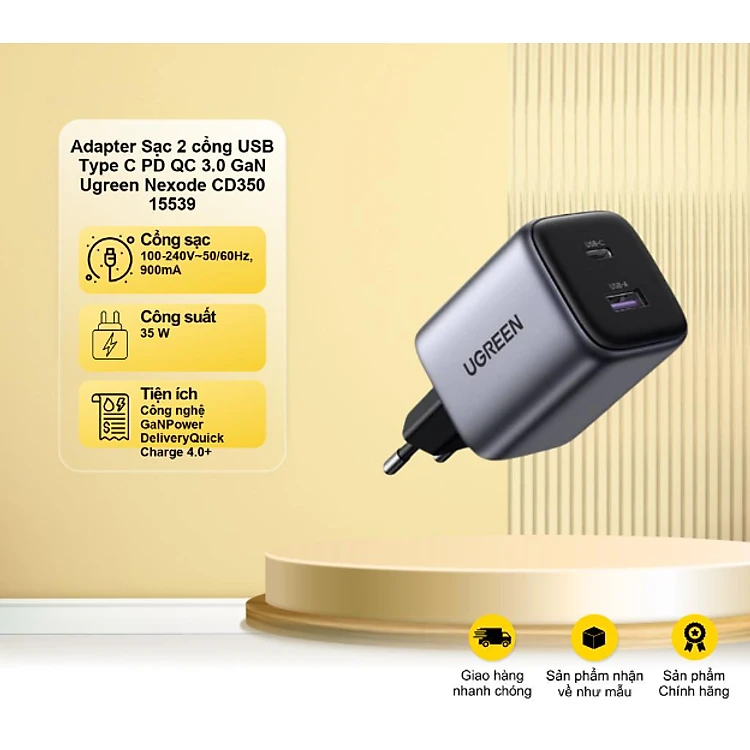 Adapter Sạc 2 cổng USB Type C PD QC 3.0 GaN 35W Ugreen Nexode CD350 15539 - Hàng chính hãng