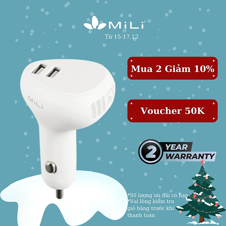 Adapter Sạc Ô Tô MiLi Smart Air Tích Hợp Lọc Không Khí HC-C39 - Hàng Chính Hãng