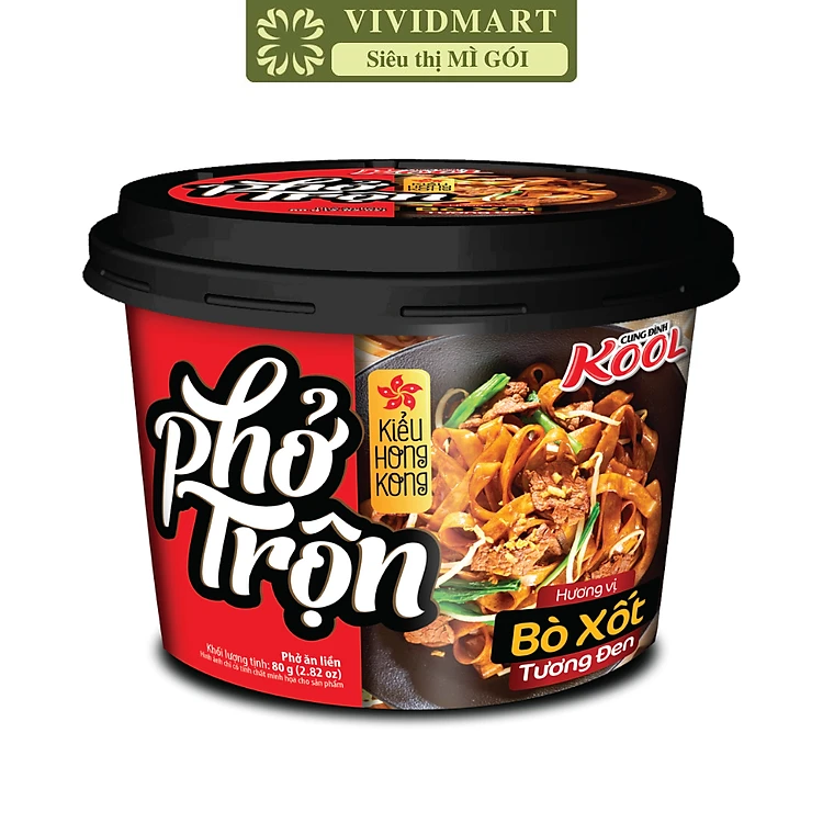 AFOTECH - Phở tô trộn Cung Đình Kool hương vị Bò xốt tương đen kiểu Hồng Kông, Phở Cung Đình Kool tô trộn bò tương đen Hongkong, Tô Cung Đình Kool phở ăn liền (80g/tô)