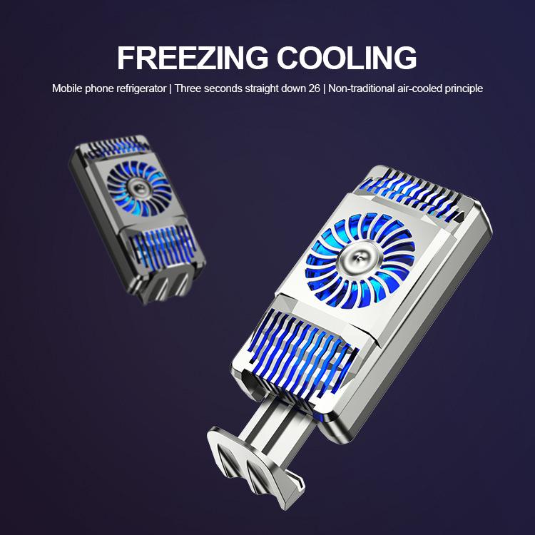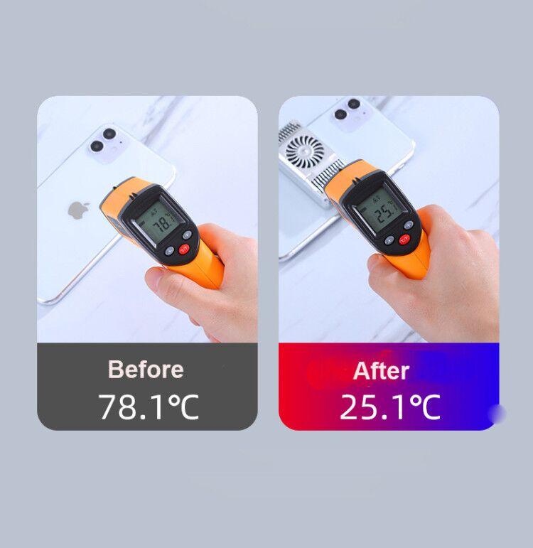 To fix the cooling bracket of the semiconductor mobile phone on the back of the mobile phone, first hook one side to the side of the mobile phone, then pull the telescopic sleeve to connect the other side of the mobile phone to complete the tightening. Connect the power cord to the TYPE-C interface and USB power adapter to start, and then the switch next to TYPE-C controls the fan light switch. The loading head needs to be prepared by itself.