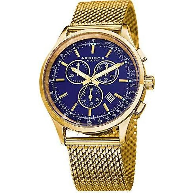 Akribos XXIV Men's Multifunction Watch - 3 Subdials Round Black Dial Chronograph Quartz Watch On a Mesh Bracelet - AK625
