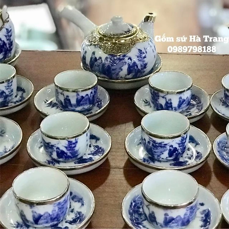 Ấm chén Bát Tràng Bọc đồng Hoạ tiết trúc lâm thất hiền