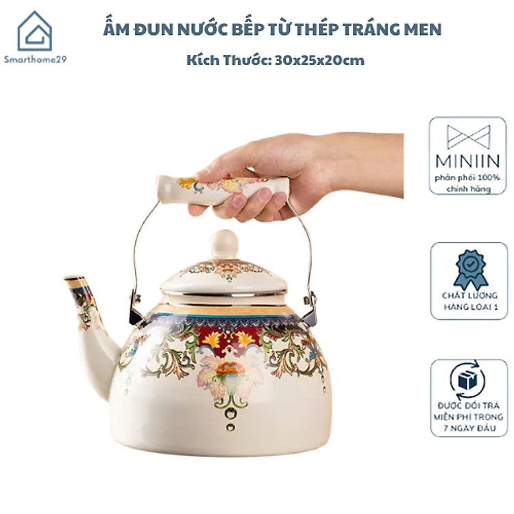 Ấm Đun Nước Bếp Từ Thép Tráng Men Lớn 3.3L Retro Kiểu Hoàng Gia – Tiện Lợi & Sang Trọng - HÀNG CHÍNH HÃNG MINIIN