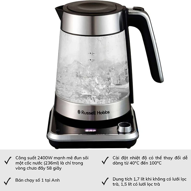 Ấm Đun Nước Russell Hobbs Attentiv 26200-70 1,7L Nhập Đức Hàng Chính Hãng