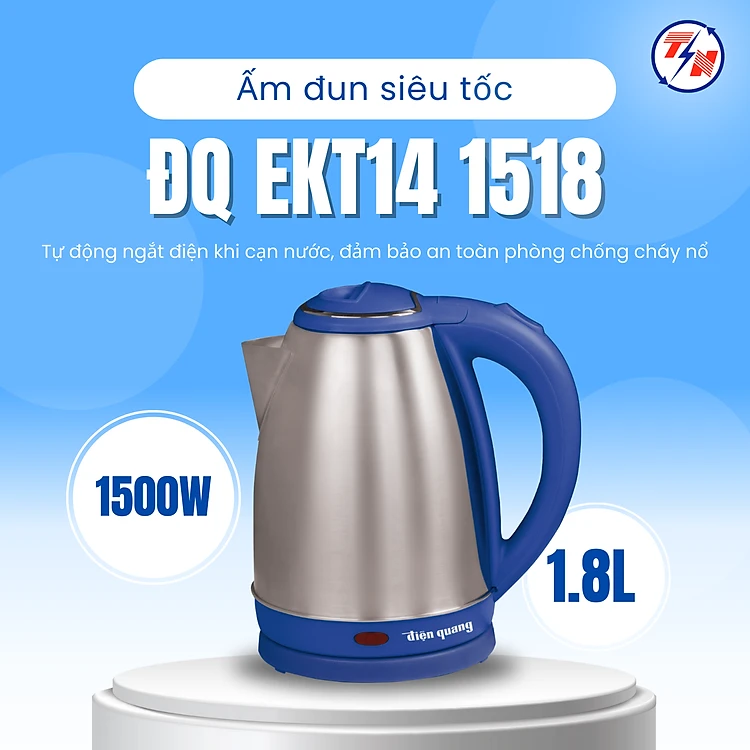 Ấm đun nước siêu tốc Điện Quang ĐQ EKT14 1518 Xanh Dương ( 1500W, 1.8L, inox 201 mờ, nhựa PP ) Hàng chính hãng