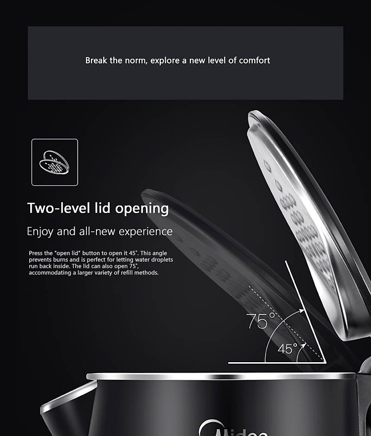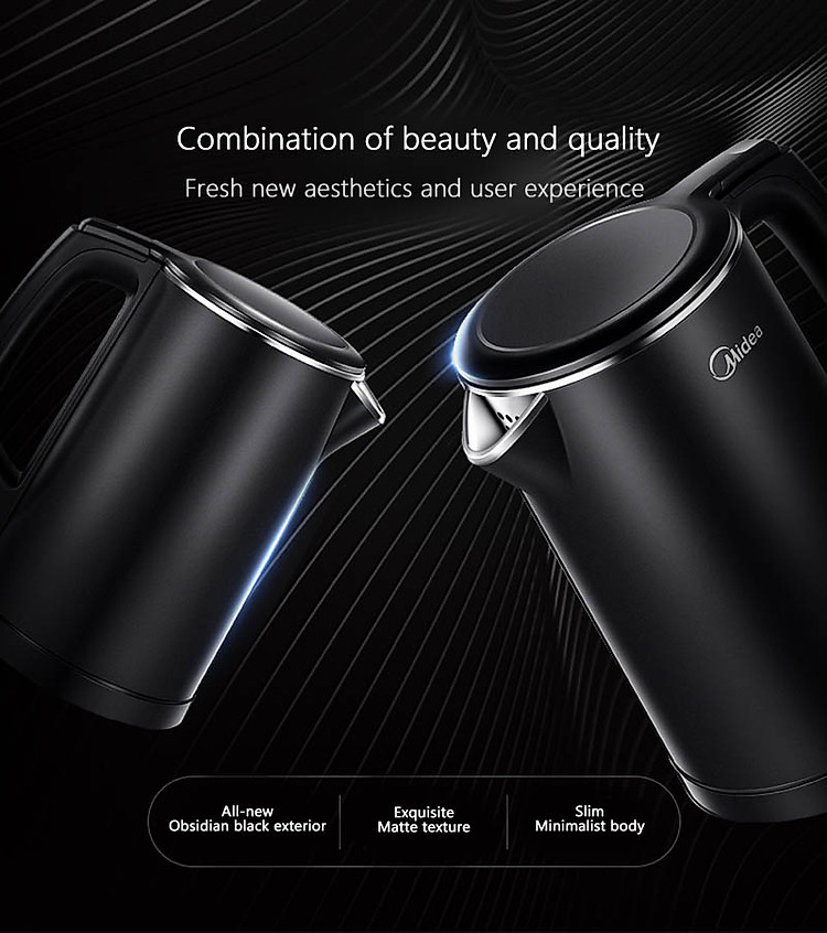 • Ấm Đun Siêu Tốc Midea MK-HJ1512d(1.5L) là sản phẩm đặc biệt với cấu tạo 2 lớp có độ bền cao, rất chắc chắn và thiết kế nhỏ gọn, hiện đại.