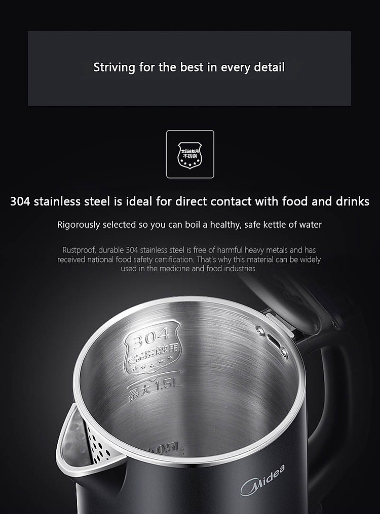 • Sản phẩm được làm từ thép 304 không gỉ chất lượng cao, đảm bảo an toàn cho sức khỏe người sử dụng giúp truyền nhiệt nhanh, làm nước mau nóng và giữ nước ấm được lâu hơn.