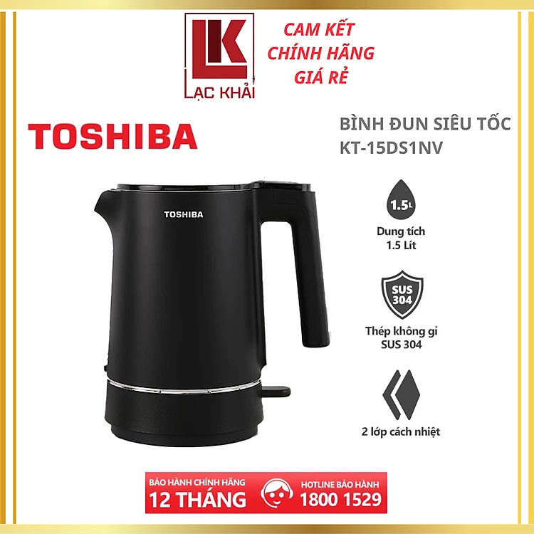 Bình đun siêu tốc Toshiba KT-15DS1NV - 1.5L - Inox 304 - Hàng chính hãng, bảo hành 12 tháng, chất lượng Nhật Bản