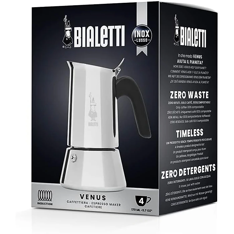 ẤM PHA CÀ PHÊ ESPRESSO BIALETTI VENUS 4 CUP MÀU BẠC hàng chính hãng