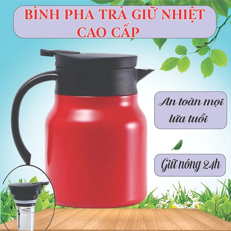 Ấm pha trà giữ nhiệt - Bình pha trà dung tích 1000ML có lõi lọc cao cấp có quai cầm rất thích hợp để đựng nước, hãm trà, màu ngẫu nhiên