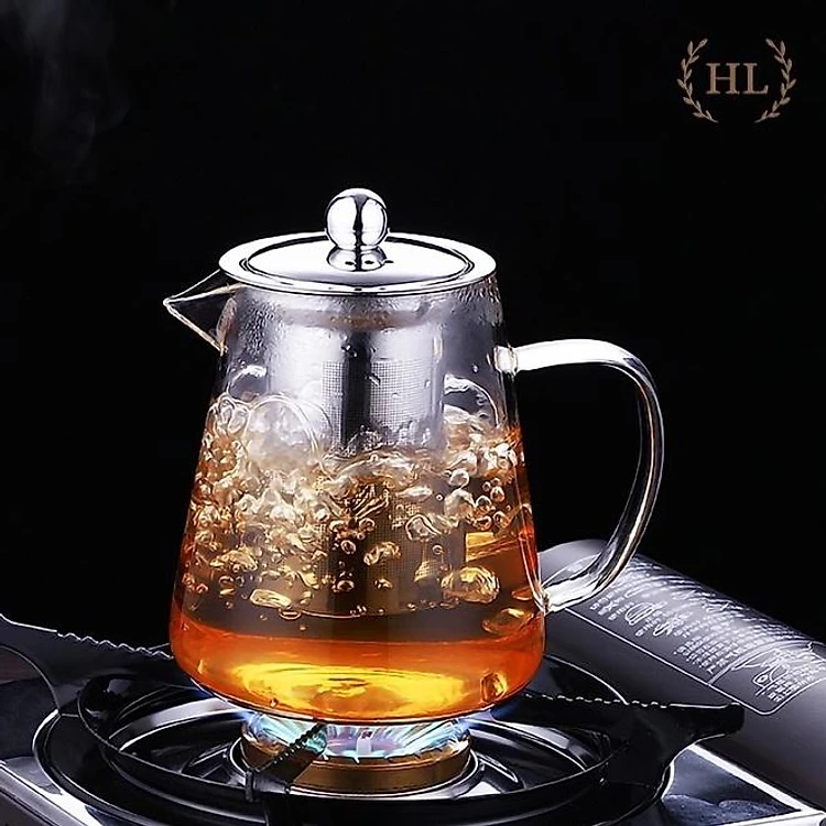 Ấm pha trà thủy tinh có lõi lọc Inox hình tháp | ÁN THUỶ TINH CÓ LÕI LỌC ĐUN ĐƯỢC BẾP GAS