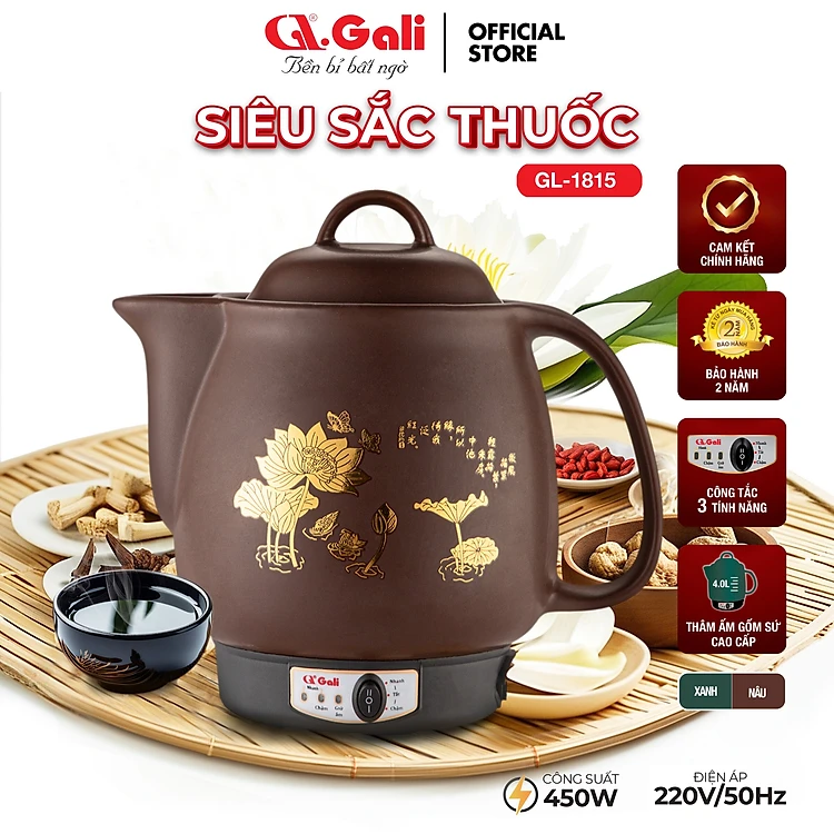 Ấm sắc thuốc tự động 4L GL-1815 - 450W, Ấm nấu thuốc tự động siêu tiện lợi, an toàn. Hàng chính hãng bảo hành 24 Tháng