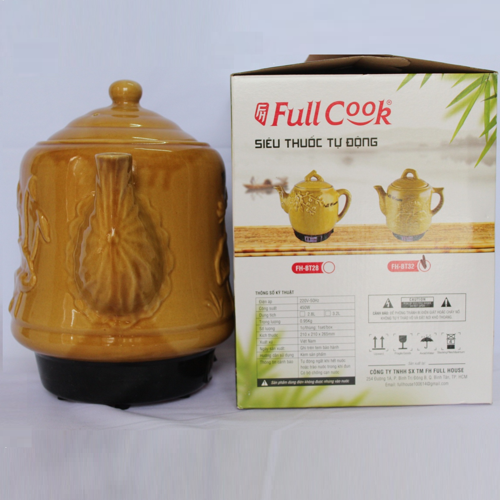 Ấm Siêu Sắc Thuốc Điện Tự Động Gốm Bát Tràng Full Cook (3,2 lít) - Hàng Chính Hãng